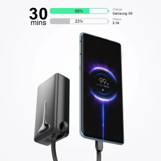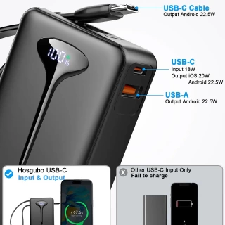10000mAh Fast-Charging Power Bank with Built-In USB-C Cable (22.5W)
