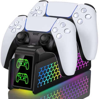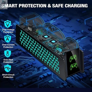 ChargeDock PS5 keeps your gaming setup clean, organized, and always ready for action. Designed for DualSense and DualSense Edge controllers, this dual charging station delivers fast, stable power with built-in protection against overcharging, overheating, and short circuits. LED indicators on the front show charging status at a glance — green when you’re ready to play, red when power is flowing. The vented base includes subtle RGB-style lighting effects, giving your setup a polished, futuristic touch without being too flashy. The dock locks controllers firmly in place with its anti-slip cradle, ensuring stable USB-C alignment every time you drop them in. It’s a simple upgrade that instantly improves any gaming desk. Why gamers love it: