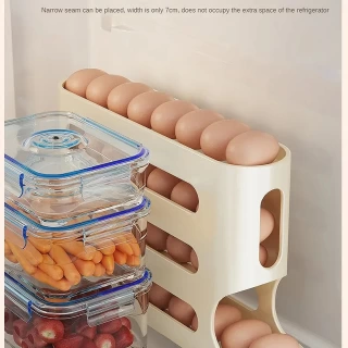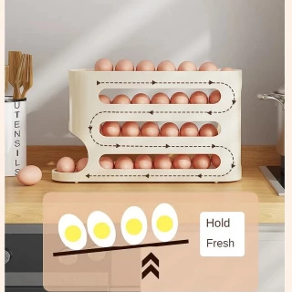 Keeping your eggs organized shouldn’t feel like a puzzle. StackFlow turns your fridge into a neat, easy-to-reach storage zone with a smart rolling design that feeds each egg forward gently — no cracks, no digging around. Whether you choose the 2-tier, 3-tier, or 4-tier version, each layer holds a full row of eggs and releases them one-by-one as you take them. It’s simple, clean, and surprisingly satisfying to use. The open-side design makes it fit perfectly on fridge doors, shelves, or even on your kitchen counter. Made from durable, food-safe ABS that wipes clean in seconds. Why people love it: