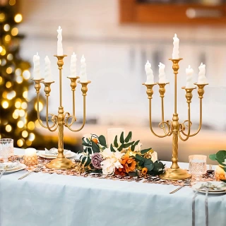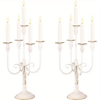 Sturdy iron metal with a polished, decorative finish. Transform any moment into a warm, inviting atmosphere with these elegant candle holders — the perfect statement piece for celebrations or home styling.